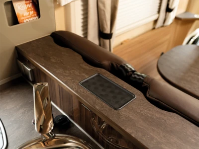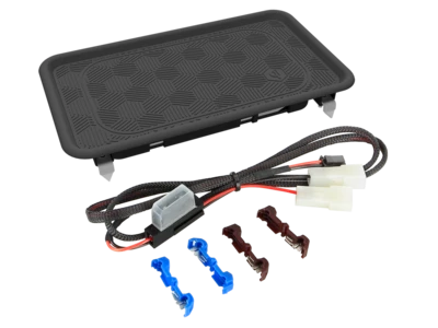 Dieses Ablagefach unterstützt das kabellos induktive Laden von Smartphones mittels INBAY.