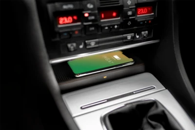 Dieses Ablagefach unterstützt das kabellos induktive Laden von Smartphones mittels INBAY.