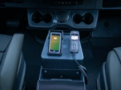 Dieses Ablagefach unterstützt das kabellos induktive Laden von Smartphones mittels INBAY.