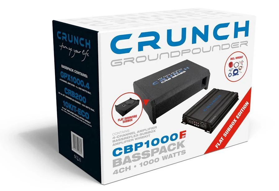 Für unbeschwertes Bassvergnügen stehen die „All-Inclusive“ Bass-Pakete von CRUNCH bereit, die mit Verstärker, Bassreflex-Subwooferbox, Kabelkit und Einbauzubehör alles beinhalten, was man benötigt, um sich richtig guten Sound ins Auto zu holen, ohne lange nach aufeinander abgestimmte, passende Komponenten suchen zu müssen.