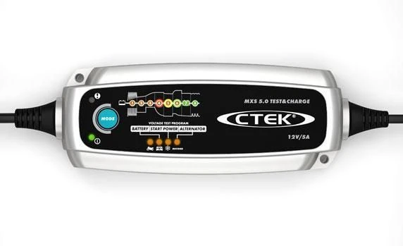 Das MXS 5.0 TEST&CHARGE ist eine Kombination aus einem hoch entwickelten, mikroprozessorgesteuerten Batterielade- und einem Batterie- und Lichtmaschinen-Prüfgerät; es bietet die bestmögliche Prüfung, Ladung und Erhaltungsladung.