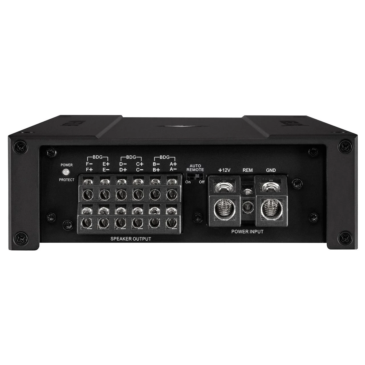 Die M SIX DSP präsentiert sich nur auf den ersten Blick als Sechskanal-Verstärker – vielmehr hat man es hier trotz der geringen Abmessungen mit einer mächtigen Schaltzentrale zu tun, die über nicht weniger als insgesamt zehn prozessierte DSP-Kanäle verfügt. Und über reichlich Leistung dazu, denn 100 Watt Dauerleistung pro Kanal sowohl an 4 Ohm wie an 2 Ohm schüttelt dieser Verstärker geradezu lässig aus dem Ärmel. Dazu gesellt sich ein fantastisches Ausstattungspaket, welches spätestens beim Preis-Leistungsverhältnis für leuchtende Augen sorgen wird.