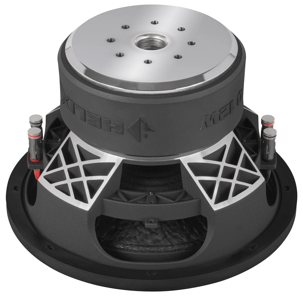 - Extrem hitzebeständige Doppelschwingspule mit enormer Wickelbreite für besonders große lineare Membranauslenkung