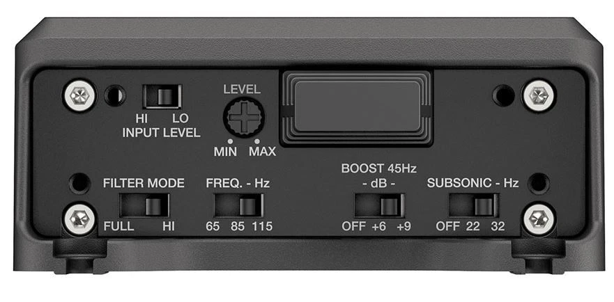 Dank des äußerst kompakten Gehäuses aus Aluminiumguss (IPX64-Einstufung) sind die HMP 1 D Verstärker unempfindlich gegenüber natürlichen Einflüssen und somit die ideale Wahl für UTV-/ATV-/Motorrad-Installationen. Er verfügt über ein unglaubliches Verhältnis von Leistung zu Größe und erlaubt dank der integrierten Frequenzweiche eine einfache Konfiguration. Der Front-End-Bereich verfügt über ein komplettes und überbrückbares Crossover-System, das für eine vollständige Flexibilität beim Systemdesign mit oder ohne externe Prozessoren sorgt und dem Anwender unendlich viele Anschlussmöglichkeiten mit jeder beliebigen Quelle bietet. Die Eingänge verfügen über eine speziell ausbalancierte Schaltung, die eine hohe Unterdrückung von elektromagnetischen Störungen zur Erzielung rauscharmer Ergebnisse sicherstellt. Der Pegel der HMP 1 D Verstärker kann mit der mitgelieferten HRC BM (Hertz Bassmanagement-Fernbedienung) ferngesteuert werden. Durch die Verbindung mit dem Fernbedienungsstecker bietet dies extrem präzise Lautstärkepegel bequem von Ihrem Sitz aus.