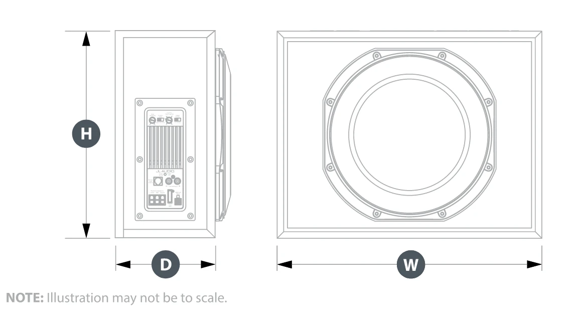 - Finish: Schwarzer, hochwertiger Autoteppich mit silberner „JL AUDIO“ -Stickerei auf der vorderen Schallwand.