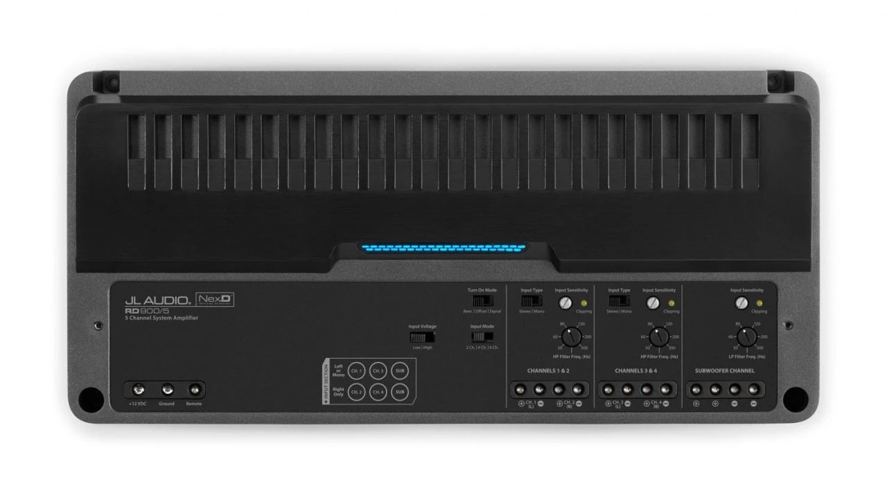 - LED-Clipping-Anzeigen sind ebenfalls Standard für jeden Kanalabschnitt. Mit dieser brandneuen, innovativen Funktion können Sie die Eingangsempfindlichkeitseinstellungen Ihres Verstärkers schnell und genau einstellen, ohne dass dafür spezielle Geräte erforderlich sind. Der RD900 / 5 verfügt über eine robuste, schwarze Pulverbeschichtung und eine oben montierte, zweifarbige LED-Lichtleiste, die den Gesamtstatus und den Zustand anzeigt. Mit der RBC-1-Fernbedienung (separat erhältlich) können Sie die Ausgabe des Subwoofers bequem vom Fahrersitz aus steuern.