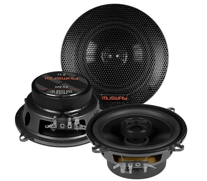 Die ME Lautsprecher sind die Einstiegsmodelle von MUSWAY. Selbst diese sind schon mit kräftigen Magnetantrieben ausgestattet, die unter anderem eine hohe Belastbarkeit mit bis zu 200 Watt Musikleistung ermöglichen. Polypropylen-Membranen mit Gummisicken garantieren einen tiefen und kräftigen Bass und eine sehr hohe Langlebigkeit. Für ein optimales Abstrahlverhalten wurden in die Basslautsprecher von ME6.2C, ME5.2C und ME6.2W Phase-Plugs eingesetzt. Der 25 mm Gewebe-Neodym-Hochtöner hat nicht nur hervorragende Klangeigenschaften, sondern ist auch noch besonders flexibel einsetzbar, da der äußere Plastikring abnehmbar ist und sich dadurch der Durchmesser auf kompakte 43,5 mm verringert – passend für das Spiegeldreieck oder die A-Säule. Für einfache Verbaubarkeit sorgen die für den Hochton- und Basszweig getrennten Inline-Frequenzweichen, die kaum Platz beanspruchen.