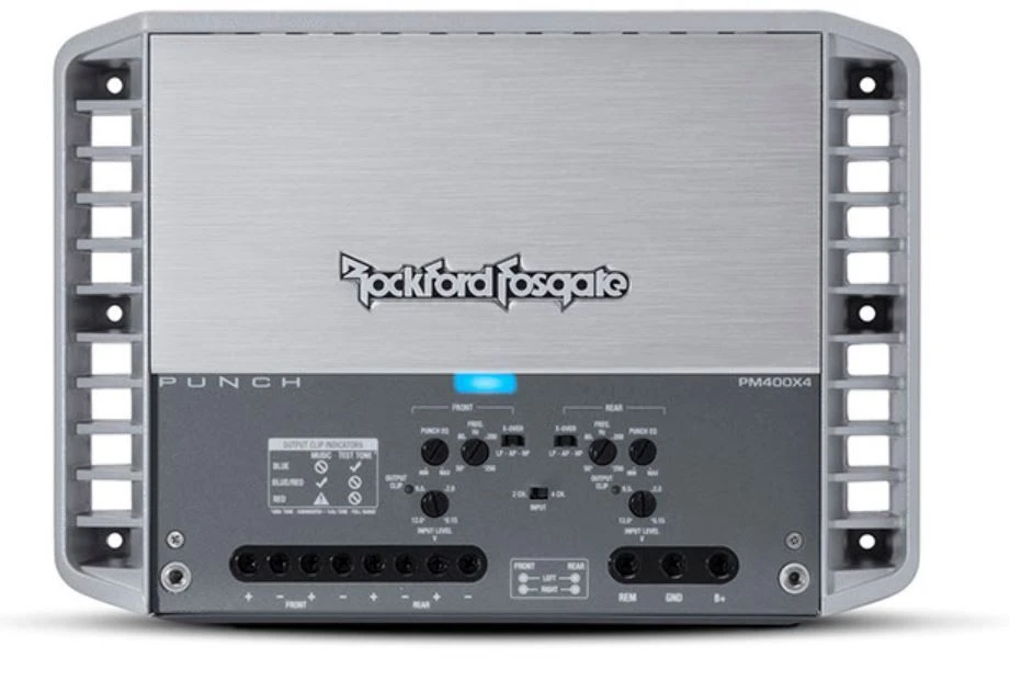 Der PM400X4 eignet sich perfekt für 4-Wege-Frontstufen- / Heckfüll- oder 3-Wege-Frontstufen- / Subwoofersysteme. Legen Sie einfach ein Paar Komponentenlautsprecher auf die vorderen Kanäle und Subs auf die Rückseite und BOOM – Sie haben „The PUNCH“. Mit seinem flexiblen Design ist der PM400X4 eine ausgezeichnete Wahl für Verstärker für praktisch jedes Fahrzeug.